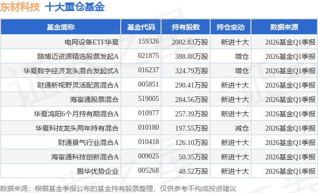 根据2026基金Q1季报公募基金重仓股数据,重仓该股的公募基金共20家,其中持有数量最多的公募基金为华夏基金的电网设备ETF华夏。电网设备ETF华夏目前规模为300.87亿元,最新净值1.9848(4月24日),较上一交易日下跌1.47%,近一年上涨89.37%。该公募基金现任基金经理为单宽之。单宽之在任的基金产品包括:华夏有色金属ETF联接A,管理时间为2024年6月11日至今,期间收益率为96.5%;华夏半导体材料设备ETF联接A,管理时间为2024年6月11日至今,期间收益率为108.6%;华夏中证装备产业ETF发起式联接A,管理时间为2024年6月11日至今,期间收益率为57.01%;有色金属ETF华夏,管理时间为2024年6月11日至今,期间收益率为103.46%。