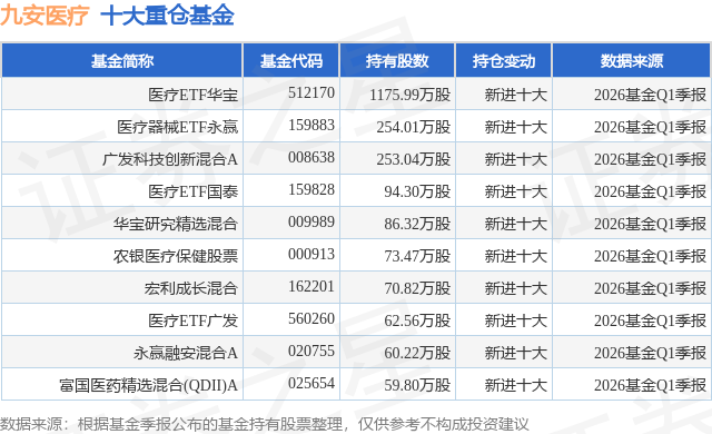 根据2026基金Q1季报公募基金重仓股数据,重仓该股的公募基金共48家,其中持有数量最多的公募基金为华宝基金的医疗ETF华宝。医疗ETF华宝目前规模为279.96亿元,最新净值0.3348(4月24日),较上一交易日下跌0.18%,近一年上涨7.31%。该公募基金现任基金经理为张放。张放在任的基金产品包括:智能制造ETF华宝,管理时间为2021年1月29日至今,期间收益率为76.26%;养老ETF华宝,管理时间为2021年9月8日至今,期间收益率为-19.23%;绿色能源ETF华宝,管理时间为2022年12月16日至今,期间收益率为7.32%;华宝中证沪港深新消费指数A,管理时间为2023年4月11日至今,期间收益率为11.37%。