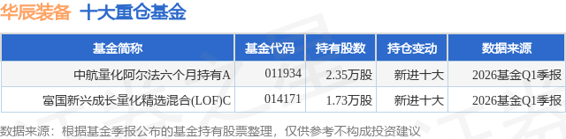 根据2026基金Q1季报公募基金重仓股数据,重仓该股的公募基金共2家,其中持有数量最多的公募基金为中航基金的中航量化阿尔法六个月持有A。中航量化阿尔法六个月持有A目前规模为0.21亿元,最新净值1.216(4月24日),较上一交易日下跌0.12%,近一年上涨50.25%。该公募基金现任基金经理为龙川 杨扬。龙川在任的基金产品包括:中航华证商飞高端制造产业指数发起A,管理时间为2023年3月7日至今,期间收益率为-0.22%;中航中证智选均衡配置指数发起A,管理时间为2025年3月19日至今,期间收益率为48.12%。杨扬在任的基金产品包括:中航中证智选均衡配置指数发起A,管理时间为2025年3月19日至今,期间收益率为48.12%。