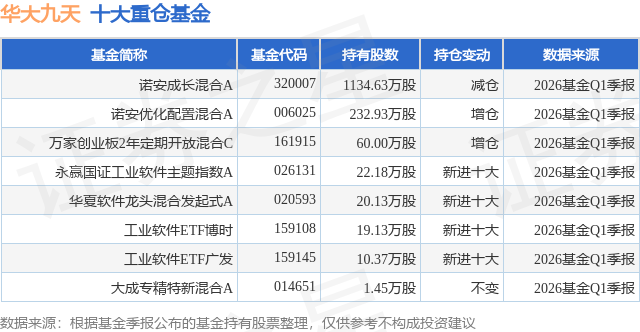 重仓华大九天的公募基金请见下表: