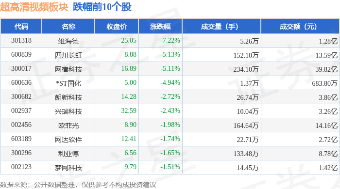 从资金流向上来看,当日超高清视频板块主力资金净流入30.15亿元,游资资金净流出14.23亿元,散户资金净流出15.92亿元。超高清视频板块个股资金流向见下表:
