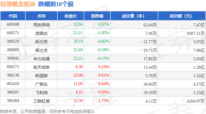 证券之星消息,4月27日征信概念板块较上一交易日下跌0.5%,用友网络领跌。当日上证指数报收于4086.34,上涨0.16%。深证成指报收于14995.75,上涨0.37%。征信概念板块个股涨跌见下表: