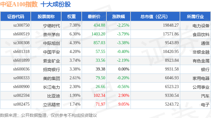 资金流向方面,中证A100(000903)指数成份股当日主力资金净流出合计21.8亿元,游资资金净流入合计22.86亿元,散户资金净流出合计1.06亿元。成份股资金流向详情见下表: