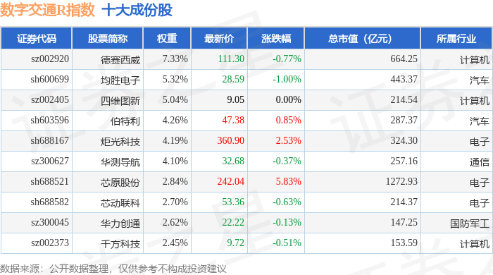 数字交通R(480075)指数十大成份股详情如下: