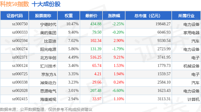 科技50(970080)指数十大成份股详情如下: