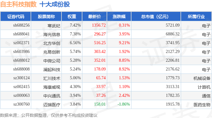 自主科技(980033)指数十大成份股详情如下: