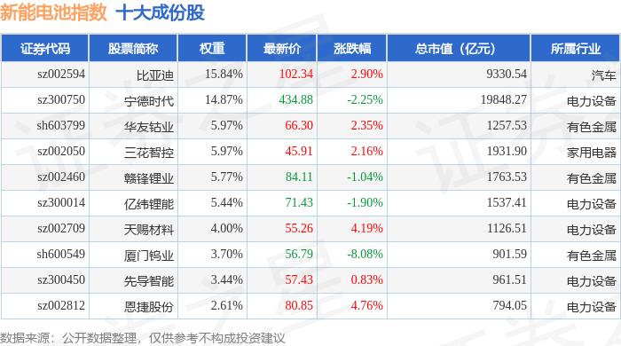 新能电池(980032)指数十大成份股详情如下:
