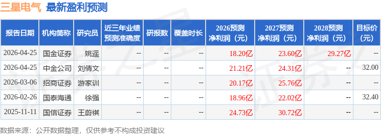 东吴证券股份有限公司曾朵红,朱国广,冉胜男,司鑫尧近期对三星电气进行研究并发布了研究报告《2025年年报&2026年一季报点评:康复医院、国内电表降价影响,业绩承压静待拐点》,给予三星电气买入评级。