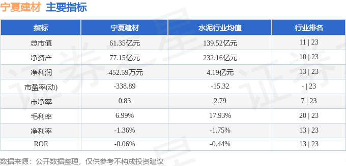 宁夏建材2026年一季报显示,一季度公司主营收入4.61亿元,同比下降47.44%;归母净利润-452.59万元,同比上升46.17%;扣非净利润-1159.54万元,同比上升36.72%;负债率17.16%,投资收益0.2万元,财务费用-1069.19万元,毛利率6.99%。宁夏建材(600449)主营业务:基础建材业务和数字物流业务。