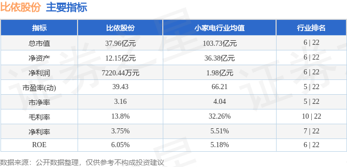 比依股份2025年三季报显示,前三季度公司主营收入17.56亿元,同比上升18.66%;归母净利润7220.44万元,同比下降29.0%;扣非净利润6612.84万元,同比下降33.39%;其中2025年第三季度,公司单季度主营收入5.98亿元,同比下降3.4%;单季度归母净利润1849.22万元,同比下降45.08%;单季度扣非净利润1724.17万元,同比下降47.15%;负债率61.63%,投资收益644.82万元,财务费用-256.71万元,毛利率13.8%。比依股份(603215)主营业务:智能小家电产品的研发、设计、制造和销售。