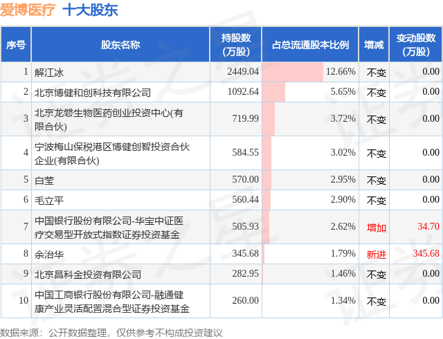 根据爱博医疗2026年一季报公布的十大股东详情如下: