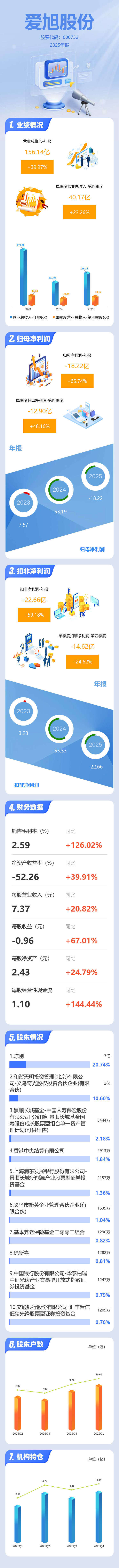 证券之星消息,爱旭股份2025年年报显示,当年度公司主营收入156.14亿元,同比上升39.97%;归母净利润-18.22亿元,同比上升65.75%;扣非净利润-22.66亿元,同比上升59.18%;其中2025年第四季度,公司单季度主营收入40.17亿元,同比上升23.27%;单季度归母净利润-12.9亿元,同比上升48.17%;单季度扣非净利润-14.62亿元,同比上升24.62%;负债率79.95%,投资收益-1096.68万元,财务费用1.72亿元,毛利率2.59%。