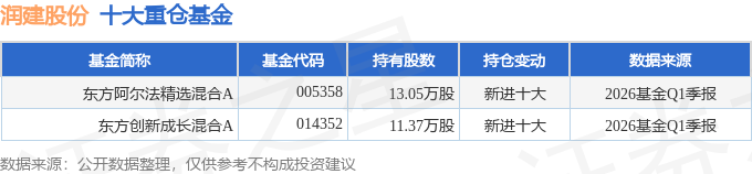 持有润建股份最多的基金为东方阿尔法精选混合A,目前规模为1.0亿元,最新净值0.9369(4月27日),较上一交易日下跌1.47%,近一年上涨12.24%。该基金现任基金经理为吴秋松 周谧。