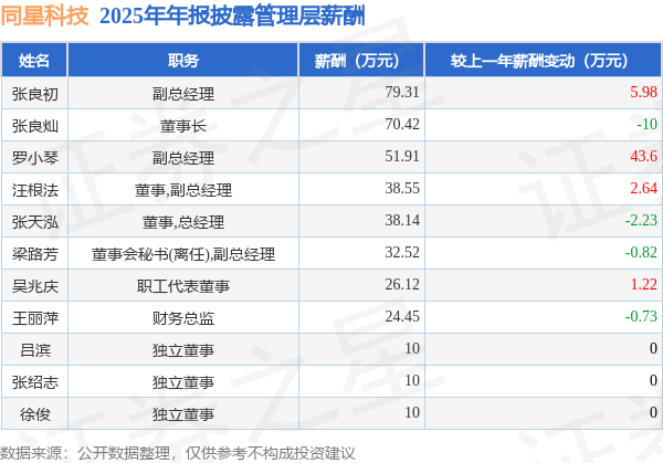 证券之星消息,同星科技发布2025年年报,数据显示:公司主营收入12.86亿元,同比增13.45%。归母净利润为1.09亿元,同比减14.37%。扣非净利润为9520.76万元,同比减18.12%。当年公司员工总数1285人,同比增2.31%。人均薪酬14.23万元(注:"人均薪酬"根据定期报告中"应付职工薪酬"附注的本期增加值 / 员工总数计算而来),同比增8.72%。人均创收100.08万元,同比增10.89%。人均创利8.45万元,同比减16.3%。其中管理层薪酬总额为391.42万元,同比上一年减7.06%,薪酬最高的为副总经理张良初,薪酬79.31万元。