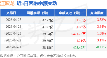 证券之星消息,4月27日,江波龙(301308)融资买入9.56亿元,融资偿还8.16亿元,融资净买入1.4亿元,融资余额42.37亿元,当日融资净买入排名第41,近3个交易日已连续净买入累计3.26亿元,近20个交易日中有11个交易日出现融资净买入。