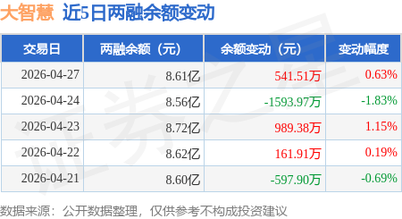 证券之星消息,4月27日,大智慧(601519)融资买入2578.82万元,融资偿还2078.07万元,融资净买入500.75万元,融资余额8.59亿元。