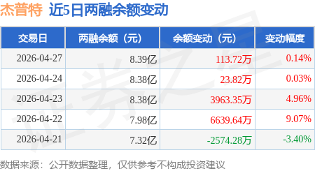 证券之星消息,4月27日,杰普特(688025)融资买入1.53亿元,融资偿还1.52亿元,融资净买入100.15万元,融资余额8.38亿元,近20个交易日中有12个交易日出现融资净买入。