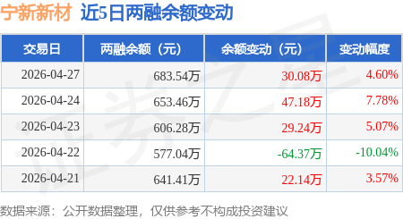 证券之星消息,4月27日,宁新新材(920719)融资买入65.36万元,融资偿还35.28万元,融资净买入30.08万元,融资余额683.54万元,近3个交易日已连续净买入累计106.5万元。