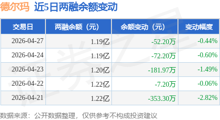 证券之星消息,4月27日,德尔玛(301332)融资买入555.93万元,融资偿还608.73万元,融资净卖出52.8万元,融资余额1.18亿元。