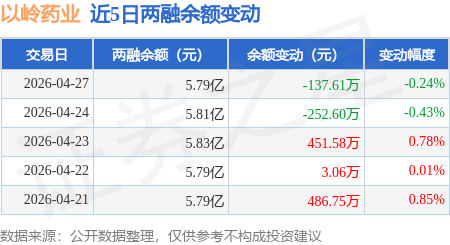 证券之星消息,4月27日,以岭药业(002603)融资买入860.81万元,融资偿还988.7万元,融资净卖出127.89万元,融资余额5.78亿元。