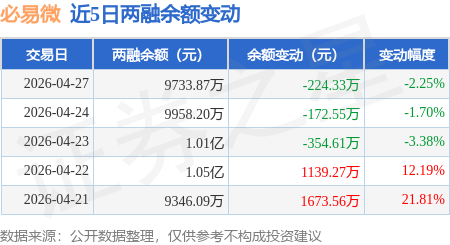 证券之星消息,4月27日,必易微(688045)融资买入2188.26万元,融资偿还2412.59万元,融资净卖出224.33万元,融资余额9733.87万元,近20个交易日中有11个交易日出现融资净买入。