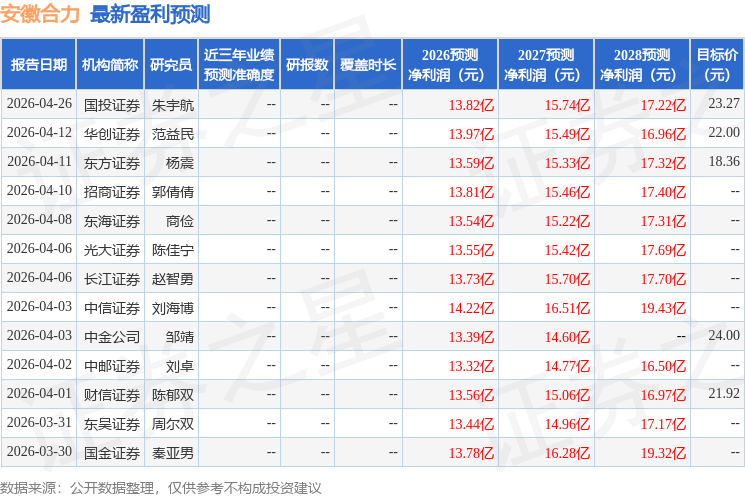 最新盈利预测明细如下:
