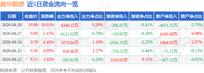 证券之星消息,昊华能源4月28日涨停收盘,收盘价10.88元。该股于14点15分涨停,未打开涨停,截止收盘封单资金为4463.54万元,占其流通市值0.28%。
