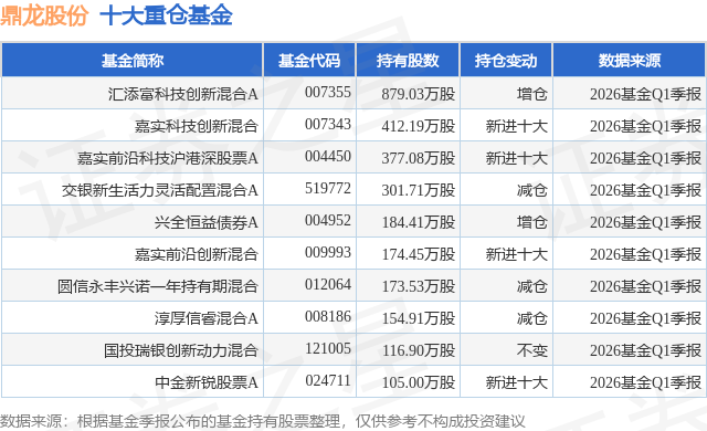 重仓鼎龙股份的前十大公募基金请见下表: