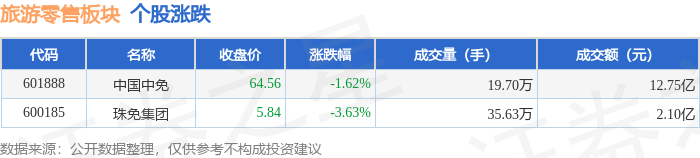 证券之星消息,4月28日旅游零售板块较上一交易日下跌1.78%,珠免集团领跌。当日上证指数报收于4078.64,下跌0.19%。深证成指报收于14830.45,下跌1.1%。旅游零售板块个股涨跌见下表: