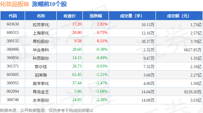 证券之星消息,4月28日化妆品板块较上一交易日下跌1.33%,福瑞达领跌。当日上证指数报收于4078.64,下跌0.19%。深证成指报收于14830.45,下跌1.1%。化妆品板块个股涨跌见下表: