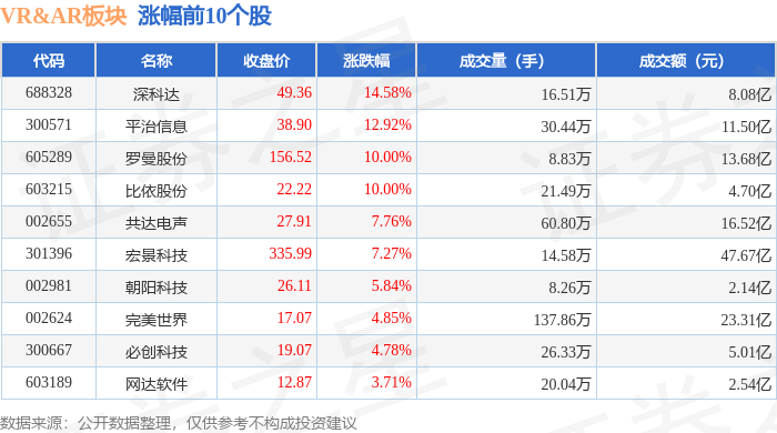 证券之星消息,4月28日VR&AR板块较上一交易日下跌1.29%,华立科技领跌。当日上证指数报收于4078.64,下跌0.19%。深证成指报收于14830.45,下跌1.1%。VR&AR板块个股涨跌见下表: