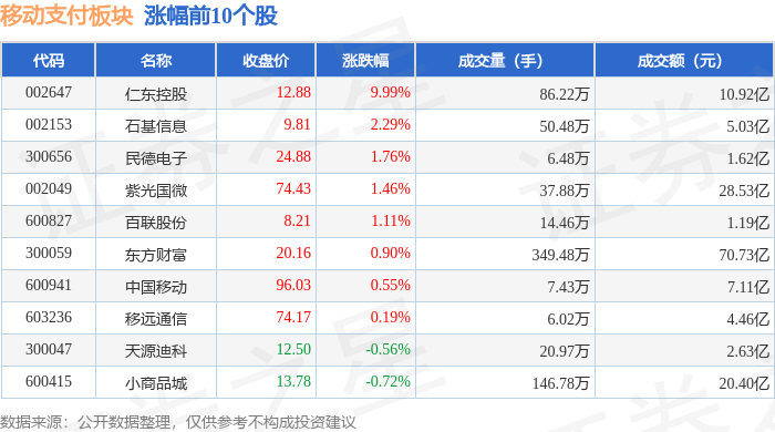 从资金流向上来看,当日移动支付板块主力资金净流出8.13亿元,游资资金净流入2.4亿元,散户资金净流入5.74亿元。移动支付板块个股资金流向见下表: