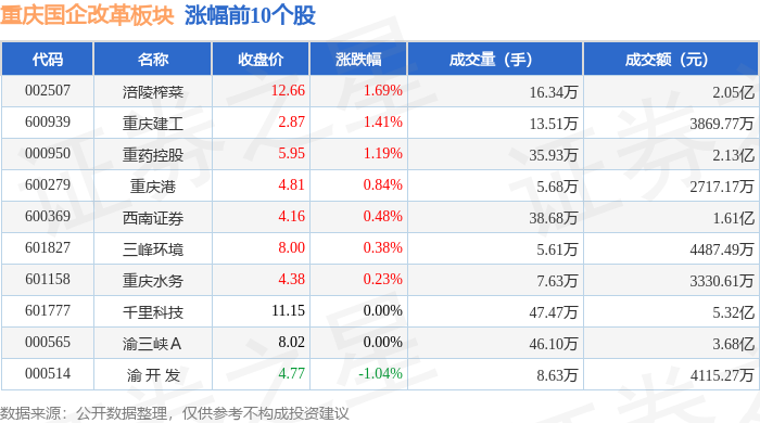 从资金流向上来看,当日重庆国企改革板块主力资金净流入1992.71万元,游资资金净流出1064.04万元,散户资金净流出928.67万元。重庆国企改革板块个股资金流向见下表: