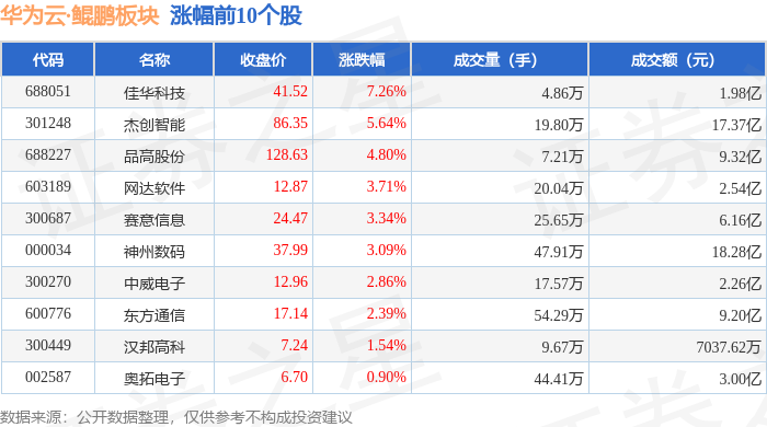 从资金流向上来看,当日华为云·鲲鹏板块主力资金净流出45.58亿元,游资资金净流入10.2亿元,散户资金净流入35.38亿元。华为云·鲲鹏板块个股资金流向见下表:
