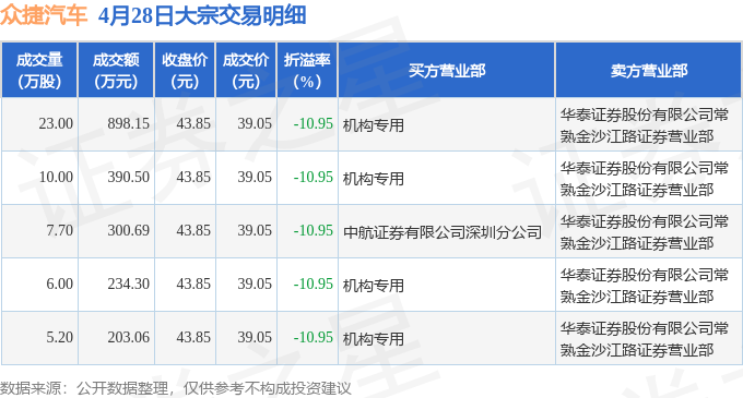 证券之星消息,4月28日众捷汽车发生大宗交易,交易数据如下: