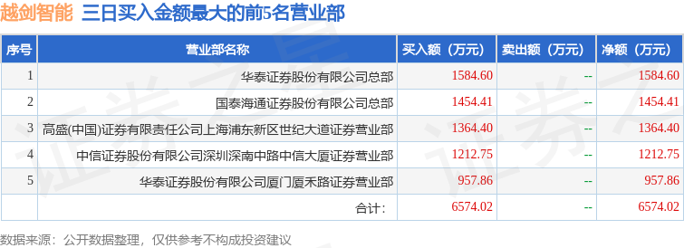 证券之星消息,沪深交易所2026年4月28日公布的交易公开信息显示,越剑智能(603095)因非ST、*ST和S证券连续三个交易日内收盘价格涨幅偏离值累计达到20%的证券登上龙虎榜。此次是近5个交易日内第1次上榜。