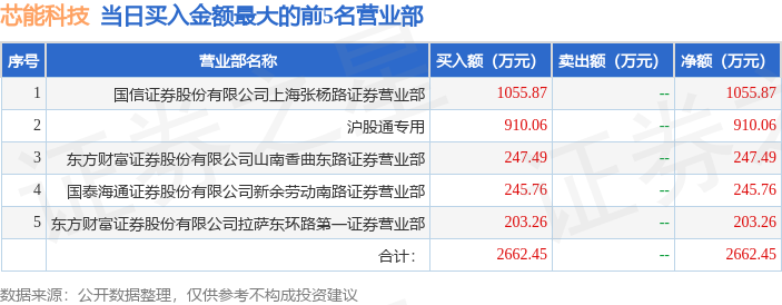 证券小知识:龙虎榜是交易所披露的竞价交易公开信息,现身龙虎榜的个股都是当日最为活跃的个股,是投资者日常重点关注的数据。交易所公布当日买入金额和卖出金额前五名的席位,其中一些席位代表特殊意义,如机构专用席位是指基金专用席位、券商自营专用席位、社保专用席位、券商理财专用席位、保险机构专用席位、保险机构租用席位、QFII专用席位等机构投资者买卖证券的专用通道和席位。深股通专用、沪股通专用为北向资金的交易席位。