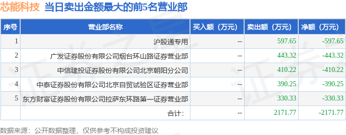 证券之星消息,沪深交易所2026年4月28日公布的交易公开信息显示,芯能科技(603105)因有价格涨跌幅限制的日收盘价格跌幅偏离值达到7%的前五只证券登上龙虎榜。此次是近5个交易日内第1次上榜。