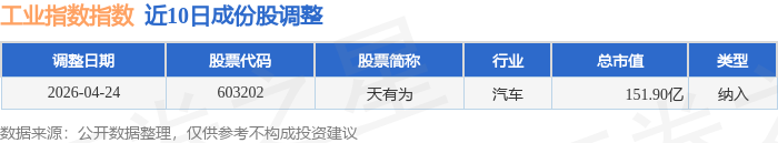 近10日内工业指数(000004)成份股做了调整,新纳入了1只股票。