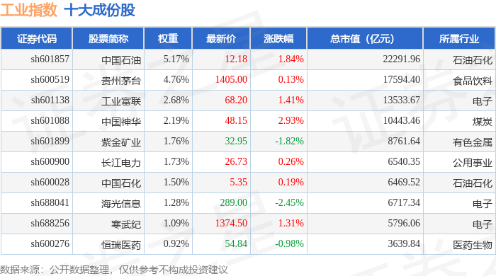 工业指数(000004)十大成份股详情如下: