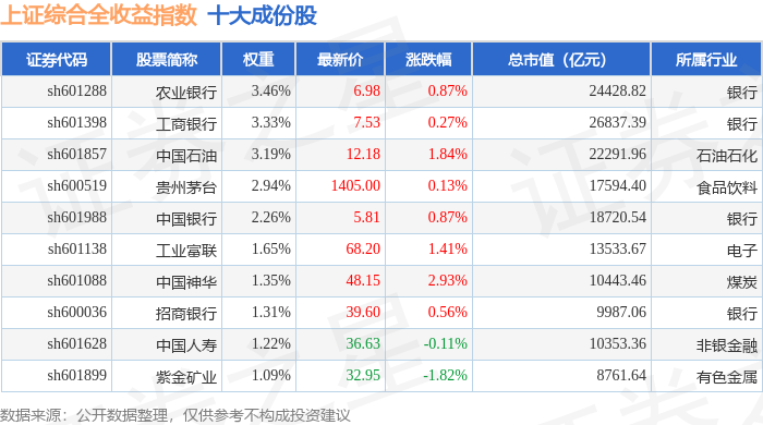 上证综合全收益(000888)指数十大成份股详情如下: