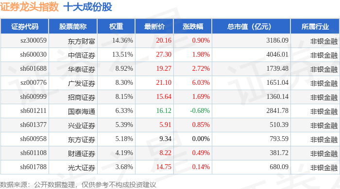 证券龙头(399437)指数十大成份股详情如下: