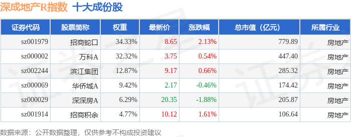 深成地产R(471001)指数十大成份股详情如下:
