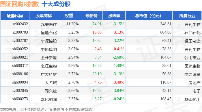 证券之星消息,4月28日,国证回购R(480063)指数报收于4598.14点,跌0.35%,成交567.54亿元,换手率1.59%。当日该指数成份股中,上涨的有22家,赛腾股份以10.0%的涨幅领涨,下跌的有28家,恒铭达以4.66%的跌幅领跌。