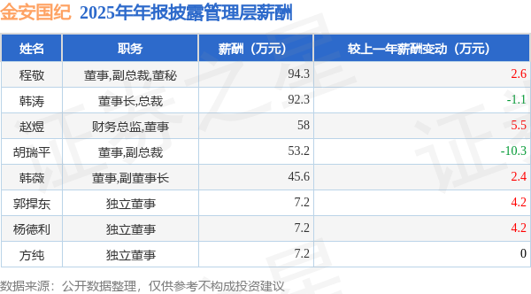 证券之星消息,金安国纪发布2025年年报,数据显示:公司主营收入44.8亿元,同比增10.67%。归母净利润为3.01亿元,同比增711.54%。扣非净利润为2.66亿元,同比增422.86%。当年公司员工总数2779人,同比减8.77%。人均薪酬14.14万元(注:"人均薪酬"根据定期报告中"应付职工薪酬"附注的本期增加值 / 员工总数计算而来),同比增11.27%。人均创收161.22万元,同比增21.3%。人均创利11.02万元,同比增1018.59%。其中管理层薪酬总额为365.0万元,同比上一年减22.46%,薪酬最高的为董事,副总裁,董秘程敬,薪酬94.3万元。