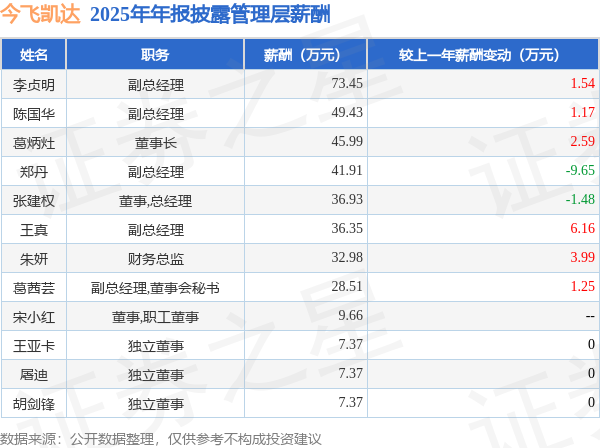 证券之星消息,今飞凯达发布2025年年报,数据显示:公司主营收入53.93亿元,同比增10.06%。归母净利润为5994.2万元,同比减10.52%。扣非净利润为2616.56万元,同比增15.13%。当年公司员工总数5622人,同比增0.16%。人均薪酬9.89万元(注:"人均薪酬"根据定期报告中"应付职工薪酬"附注的本期增加值 / 员工总数计算而来),同比增12.66%。人均创收95.93万元,同比增9.89%。人均创利1.08万元,同比减10.35%。其中管理层薪酬总额为377.32万元,同比上一年减1.92%,薪酬最高的为副总经理李贞明,薪酬73.45万元。