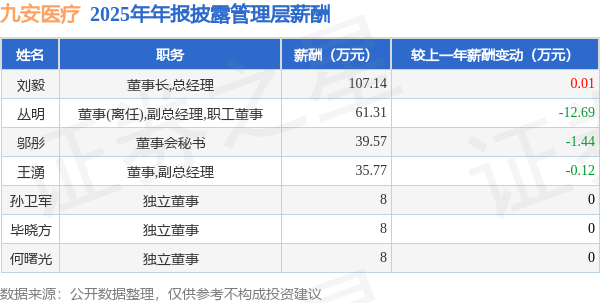 证券之星消息,九安医疗发布2025年年报,数据显示:公司主营收入13.66亿元,同比减47.32%。归母净利润为22.67亿元,同比增35.84%。扣非净利润为22.92亿元,同比增36.39%。当年公司员工总数1249人,同比增0.24%。人均薪酬48.61万元(注:"人均薪酬"根据定期报告中"应付职工薪酬"附注的本期增加值 / 员工总数计算而来),同比增11.87%。人均创收109.33万元,同比减47.45%。人均创利181.71万元,同比增25.78%。其中管理层薪酬总额为267.79万元,同比上一年减25.04%,薪酬最高的为董事长,总经理刘毅,薪酬107.14万元。