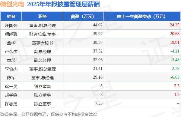 证券之星消息,微创光电发布2025年年报,数据显示:公司主营收入1.72亿元,同比减18.24%。归母净利润为-1187.77万元,同比减388.84%。扣非净利润为-1330.06万元,同比减443.7%。当年公司员工总数264人,同比增0.38%。人均薪酬19.6万元(注:"人均薪酬"根据定期报告中"应付职工薪酬"附注的本期增加值 / 员工总数计算而来),同比增9.56%。人均创收65.27万元,同比减18.55%。其中管理层薪酬总额为277.24万元,同比上一年减34.41%,薪酬最高的为董事,副总经理汪国强,薪酬44.02万元。