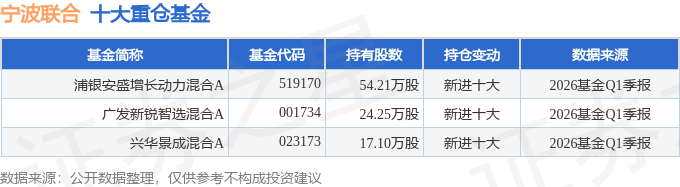 持有宁波联合最多的基金为浦银安盛增长动力混合A,目前规模为5.66亿元,最新净值1.0144(4月28日),较上一交易日下跌0.51%,近一年上涨38.03%。该基金现任基金经理为宋施怡 江峰。