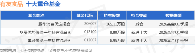 持有有友食品最多的基金为鹏华消费优选混合,目前规模为3.39亿元,最新净值3.047(4月28日),较上一交易日下跌0.59%,近一年上涨6.24%。该基金现任基金经理为黄奕松。